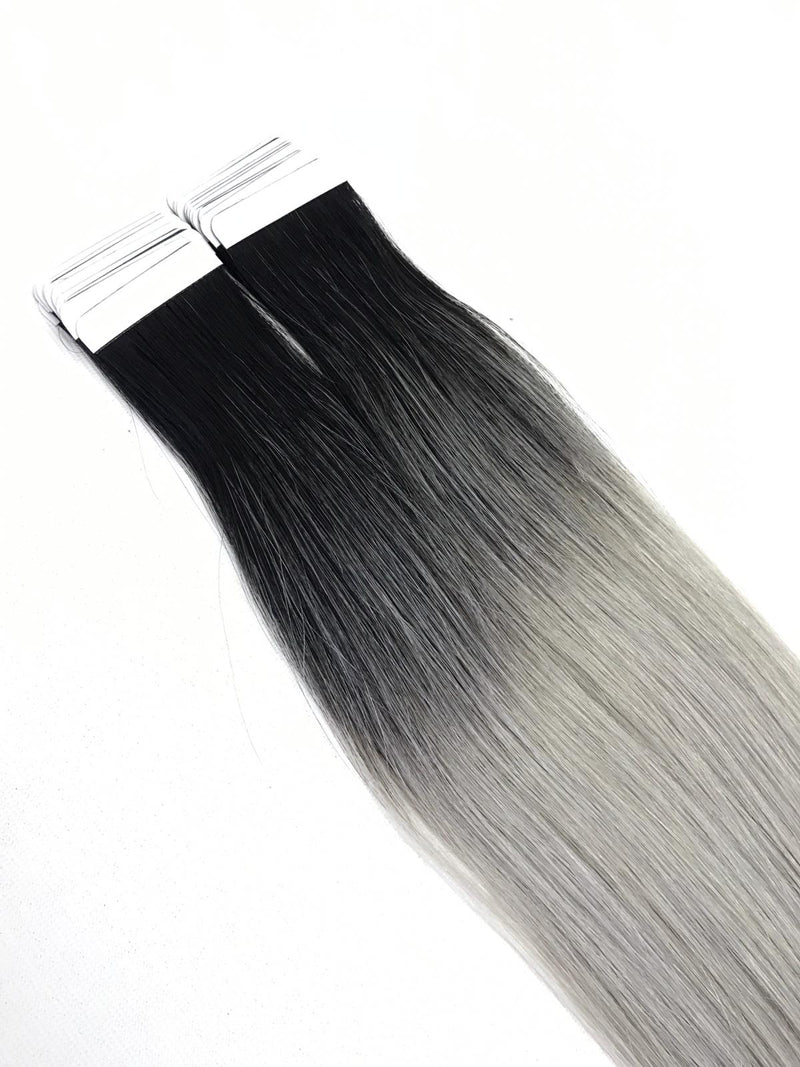 Black Grey Ombre Tape in Hair Extensions